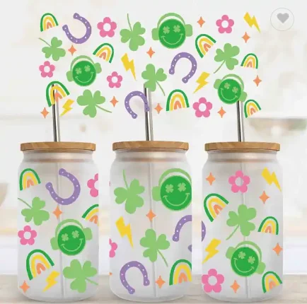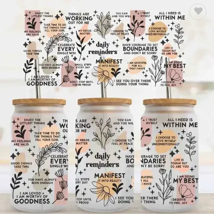Ready to Transfer Custom DIY 16oz 20oz 24oz UV DTF Sticker Glass Can Tumbler Wrap Transfer for Cup Wraps